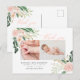 Photo pink floral elegant thank you birth announcement postcard