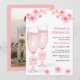 Photo Pink Floral Petals & Prosecco Bridal Shower Invitation