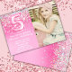 Photo Pink Glitter 5th Birthday Invitation