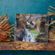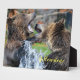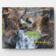 Plaque shown with a photo print of two bears playing in the water in Yellowstone National Park.