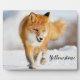 Plaque shown with a photo print of a wild red fox during winter in Yellowstone National Park.