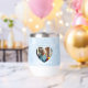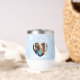 A personalized wine tumbler that you can add a person's photo, name and dates of birth and death. There is a sentimental poem on here too. A sentimental way to honor a loved one and think of them every time you sip your coffee or tea. This has a blue background.