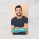 Modern photo contact design featuring a teal gradient background and scannable QR code for easy connection. This customizable layout includes space for a professional photo, name, social icons and contact details, making it perfect for entrepreneurs, freelancers and small business owners. A sleek, minimalist way to share your information and elevate your branding.