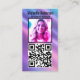 Vertical Business Card with trendy Simulated Holographic Gradient Background. A memorable and modern statement , a business card designed to catch the eye and leave a lasting impression, this card seamlessly combines style and functionality. Eye-Catching Holographic Gradient, the card features a stunning simulated holographic gradient background. This visually captivating design immediately sets you apart from the competition and leaves a lasting impression. Break free from the traditional horizontal format. The vertical orientation not only stands out but also provides a unique canvas for your personal and professional information. Showcase your personality and professionalism with a high-resolution photo on the front of the card. A well-chosen image conveys your approachability and expertise, making it easier for potential contacts to remember you. Dynamic QR Code that makes it effortless for recipients to connect with you. Customise it to direct people to your portfolio, LinkedIn profile, or any webpage you choose, making your digital presence accessible in seconds. Set of easily recognisable contact icons, including a mobile phone, email, and website. These icons provide a quick reference for how to reach you, enhancing the card's usability. Versatility and Uniqueness. Whether you're attending events, conferences, or meetings, this card will capture attention and spark conversations. Its unique design reflects your forward-thinking approach to business.
