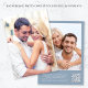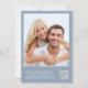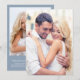Enhance your vellum wedding invitation or save the date overlays with this chic dusty blue background card stock featuring your photo on the front. On the back, upload an additional photo and input your wedding website address to create a QR code for your guests to scan to RSVP online and obtain additional wedding details such as accommodations, and personalise your RSVP details in elegant white lettering.