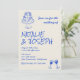 This wedding invitation is perfect for your wedding, if you are looking for an elegant unique and easy editable invitation .An elegant unique simple cream and blue wedding template invitation. Which features plain cream background. And blue hand written bride's and groom's first names. With hand drawn quirky illustrated wedding bows cake and wine glasses. And editable info with trying the knot saying on the back with customisable photo on the back and customisable QR code. Affordable and it is also digital electronic e-invitation if you want to send it by text or email. All the info are customisable by clicking on the personalise button. So Grab it and make it yours so you make you invites engaged and excited .