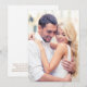 Enhance your vellum wedding invitation or save the date overlays with this white background with gold text card stock featuring your photo showcased on the front. On the back, input your wedding website address to create a QR code for your guests to scan to RSVP online and obtain additional wedding details such as accommodations.