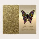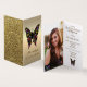 Fancy, elegant, adorable black butterfly with mexican colourful floral ornaments in combination with stylish, glam, luxury gold foil background. Unique, trendy, whimsical Quinceanera folded invitation card with custom photo of the girl, in the inside.