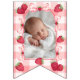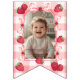 Showcase your baby girl's first year memories with this 8 Photo Red Gingham Bows Bunting Banner. This personalized photo banner is the perfect way to share her journey from newborn to her Berry First Birthday. Perfect for showing 1, 3, 6, 9 months and current photos.