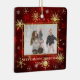 Gold snowflakes on a beautiful red background. Seasonal. Add your favourite family photos to personalise. Change the names and year, your name and what a beautiful holiday ornament gift this is.. Elegant. So simple, yet chic.