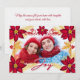Add your seasonal family photo to this beautiful and elegant red poinsettia star flower themed greeting which is paired with faux gold glitter pine branches, holly leaves and berries to accompany a simple message of Joy and your name with message. Lovely poinsettias by Angelica S.
