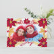Photo Red Poinsettia Joy and Gold Pine Holiday Car Card