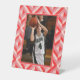 Display your favourite picture in this Photo Red Three-Tone Diamond Pattern Pedestal Sign. It features a geometric diamond pattern in three shades of red with a customizeable photo. Give your party an pop of colour.