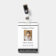 Black and white badges with photos. Registered doctor nurse