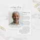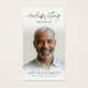 Keep the memory of a loved one close with this personalized photo remembrance tribute card featuring a beloved picture, the title CELEBRATING THE LIFE OF NAME and dates on the front and an editable remembrance message or obituary on the back. Share these cards at a funeral, memorial service, visitation, wake or Celebration of Life or send with a thank you note. With its simple yet elegant classic black and white design and elegant script typography, it makes a meaningful keepsake which offers comfort and a lasting tribute for family and friends. Its small and portable size of 3.5x2" (wallet-sized) makes it convenient for loved ones to carry it with them as a reminder of your loved one’s life and spirit.