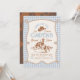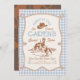 Saddle up for a sweet celebration! This gingham cowboy birthday invite features western flair with a charming twist—easy to edit, download, and print or share digitally.