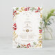 These Christmas invitations stand out for their botanical frame composition, where winter branches and green leaves intertwine with delicate red berries, evoking a natural and charming White Christmas. The balance between cool tones and warm accents creates a sense of harmony and elegance, perfect for a wedding during the festive season.