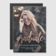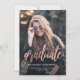 Modern magnetic graduation announcement featuring a custom vertical photo. The word "graduate" appears in rose gold faux foil script, with the graduate's name, school, and year of graduation below in white sans serif font. Easily replace the sample image with your own graduate's photo. A black gradient screen helps ensure the text pops. Ideal for high school or college graduation.
