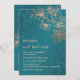 This elegant wedding invitation features rose gold line art flowers on a teal background. Bride and groom names in an elegant handwritten script. With a custom photo and a scannable qr code for your wedding website on the backside.