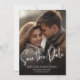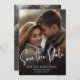 This design features a save the date photo card, perfect for any style weddings, with an elegant, classy, modern minimalist, black and white style, with a simple, 2 photo template, with an elegant typography, calligraphy script design.