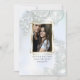 Add your photo in a gold geometric multi faceted frame. Shimmery icy blue luminescent background with luminous rose leaves , eucalyptus leaves, baby's breath and sparkly twinkles. Reverse is a complimentary coordinated colour. This design looks especially nice on the Pearl Shimmer paper choice. Customise text, font style, colour and size. We created this template is to make it easy for you to personalise with your own information. This is part of a complete Wedding Stationery Suite with matching wedding, baby shower and other event stationery. Original Artwork © by WhimsicalArtwork™.
