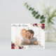 Send our photo save the date postcards with pink, burgundy, and wine flowers to let your guests know to block off your wedding date. The wording is completely customisable - if you need to change the font, font colour, size or the placement of the text boxes just click on the "Click to customise further" button to change those things. You can easily delete the thank you message before adding the listing to your cart if you prefer to write a handwritten note. Be sure to check out our large selection of coordinating items by browsing the Marsala Floral Wedding collection!