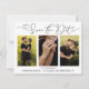 Modern 4 photos of couple Wedding Save the Date announcement card template with website information and cute heart in script font.