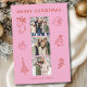 Celebrate the season with a personal touch! This festive pink Christmas card features space for three of your favourite family photos, surrounded by playful red scribble-style holiday doodles — including a Christmas tree, bells, stocking, and candy cane. The cheerful red “Merry Christmas” greeting and your family name make it easy to send warm, personalised wishes to friends and loved ones. Perfect for sharing your holiday memories in a fun and stylish way.