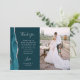 Photo Teal Blue Agate Silver Script Wedding Thank You Card