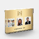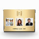 A faux gold looking background. Personalise and add business logo, 3 photos and a text on front. Black text.