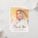 Modern graduation thank-you card featuring a custom vertical photo on the front and a horizontal photo on the reverse. The words "Thank You" appear in terracotta script, with your name and year of graduation below in sans serif font. Personalise the reverse side with a message of your choice in terracotta sans serif on a beige background, and add your signature line in handwriting script. Easily replace the sample images with your own photos. A white gradient screen helps ensure the text on the front of the card pops. Ideal for high school or college graduation.