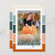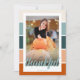 Bright Autumn Colour Block Thankful Photo Thanksgiving Greeting Card or Dinner Invitation - Customise it to fit your needs. Pastel and rich Rustic fall colours frame a photo featuring oversized script typography with the word thankful. Reverse message "Sending Warm, Heartfelt Wishes from our House to Yours this thanksgiving". Or edit to customise your own message, or dinner invitation details. Digital download is also available.