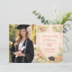 A soft parchment backdrop is framed by lush tropical greenery and coral hibiscus blooms, creating a fresh yet elegant celebration aesthetic. Delicate plumeria accents and airy palm leaves bring a warm, destination-inspired feel, while the classic typography keeps the layout refined and timeless. A subtle graduation cap detail grounds the design with just the right academic touch.