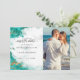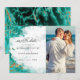 Photo Save the Date | Modern Turquoise Watercolor Geode by the BarefootBride™ - Modern Wedding hand painted beautiful watercolor illustration in shades of deep turquoise blue green and white with sparkling gold veining highlights has the appearance of a turquoise geode - A combination of script calligraphy combined with a minimalist, contemporary style text layout makes it a trending style wedding suite. This is part of a wedding stationery collection with matching wedding accessories.