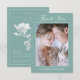 Photo Upload Sage Green Floral Wedding Calligraphy Thank You Card