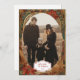 An ornate Victorian-style Christmas invitation featuring rich red poinsettias, swirling gold filigree, and festive holly accents. The aged parchment background enhances the nostalgic charm of the season, creating a timeless piece perfect for elegant holiday gatherings or Christmas dinner parties.