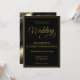 A refined cinematic wedding invitation in black and gold featuring on the front your wedding details in a combination of Elegant serif font combined with script framed in