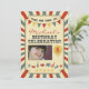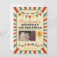 Photo Vintage Circus Birthday Party Invitations -- trade the demo photo to a picture of your choice. Each circus invite also allows you to change the number on the balloon to how old your child will be for his or her birthday. Circus invites are decorated with stripes, stars, & pennants in old fashioned blues, yellows, reds and cream colouring for a vintage feel. Giraffes, lions, monkeys, rhinos and elephants are also added for added decor.