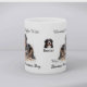 Photo AND Watercolor Bernese Mountain Dog Personalise Mug, This design is created for pet owners , Bernese mountain Dog owners, dog lovers, a lasting keepsake. Upload your pets photo for the centre of this mug with space for your pets name. The right and left sides of this mug mug includes watercolor images of this fine breed of dog, along with elegant script Typography. ''Morning coffee with my Bernese Mountain Dog.''.... Click the 'Personalise this Template', button. Use your Backspace Key to remove the template name of dog, in design, type your