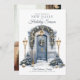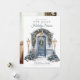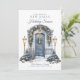 Photo We Moved New Home Christmas Holiday Card We're decking new halls for the Holidays Card. Christmas Moving Announcement photo Card. Favorite family photo on the back. Design features a watercolor front door in silver blue and gold hues decorated with pine wreaths and trees, snow, and lanterns. Holiday we moved and have a new address photo card.