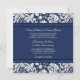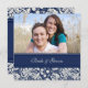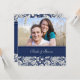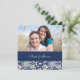 Wedding invitation custom photo cards in elegant dark navy blue and off white floral damask pattern. Customise these invitations with your wedding details and your own photo. Available in matching products for all of your wedding needs.