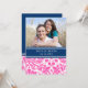 Wedding invitation custom photo template cards in elegant and contemporary dark navy blue, fuchsia hot pink, and white classic and chic floral damask vintage pattern. Customise these invitations with your wedding details and your own photo. Available in matching products for all of your wedding needs.