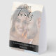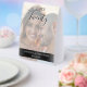 Add elegance and personalization to your wedding tables with this custom photo wedding table number, featuring a romantic couple photo with beautifully styled text elements. The top third of the design displays your table number in black calligraphy script with a white drop shadow, ensuring clarity and readability against the photo.