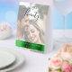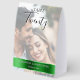 Across the bottom third, a chic emerald green band creates a polished, modern contrast. Here, your names and wedding date appear in clean white with black drop shadow lettering for a timeless, sophisticated finish. Both the upper and lower text areas are fully editable, and the background photo can be replaced with any picture you choose.