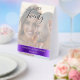 Add elegance and personalization to your wedding tables with this custom photo wedding table number, featuring a romantic couple photo with beautifully styled text elements. The top third of the design displays your table number in black calligraphy script with a white drop shadow, ensuring clarity and readability against the photo.