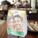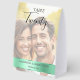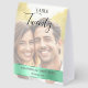 Across the bottom third, a chic sage green band creates a polished, modern contrast. Here, your names and wedding date appear in clean white with black drop shadow lettering for a timeless, sophisticated finish. Both the upper and lower text areas are fully editable, and the background photo can be replaced with any picture you choose.