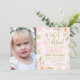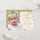 Great for lovers of gold and pink birthday invitations, this winter onederland themed design features some faux gold snow flakes, calligraphy heading and pink and gold floral arrangements. Sure to set the scene for your little girl's pink and gold winter onederland first birthday party.