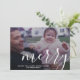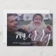 Green botanical leaves and berry pattern on back. Use one picture with the subject preferably in the middle or towards the top. A darker photo works better with this white type overlay. Make a unique and trendy Merry Christmas greeting with a trendy and joyful pattern on the back.