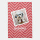 Photo with Red Chevron Pattern Custom Name Tea Towel