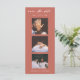 A modern minimalist terracotta photo booth strip style wedding save the date announcement. with space for 3 of your favourite photos and QR code for your wedding website.
